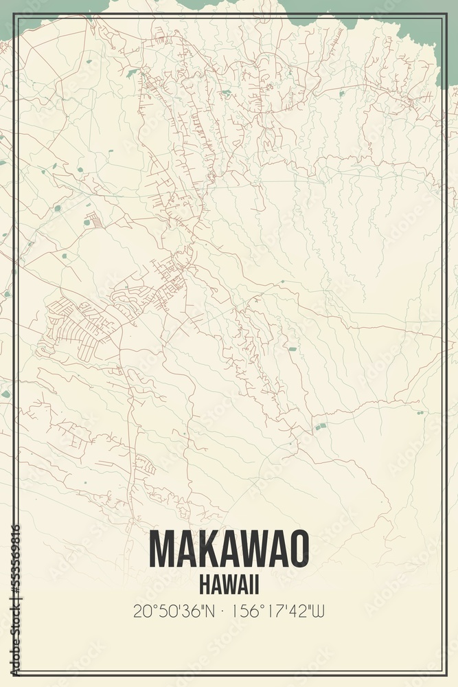 Retro US city map of Makawao, Hawaii. Vintage street map. Stock
