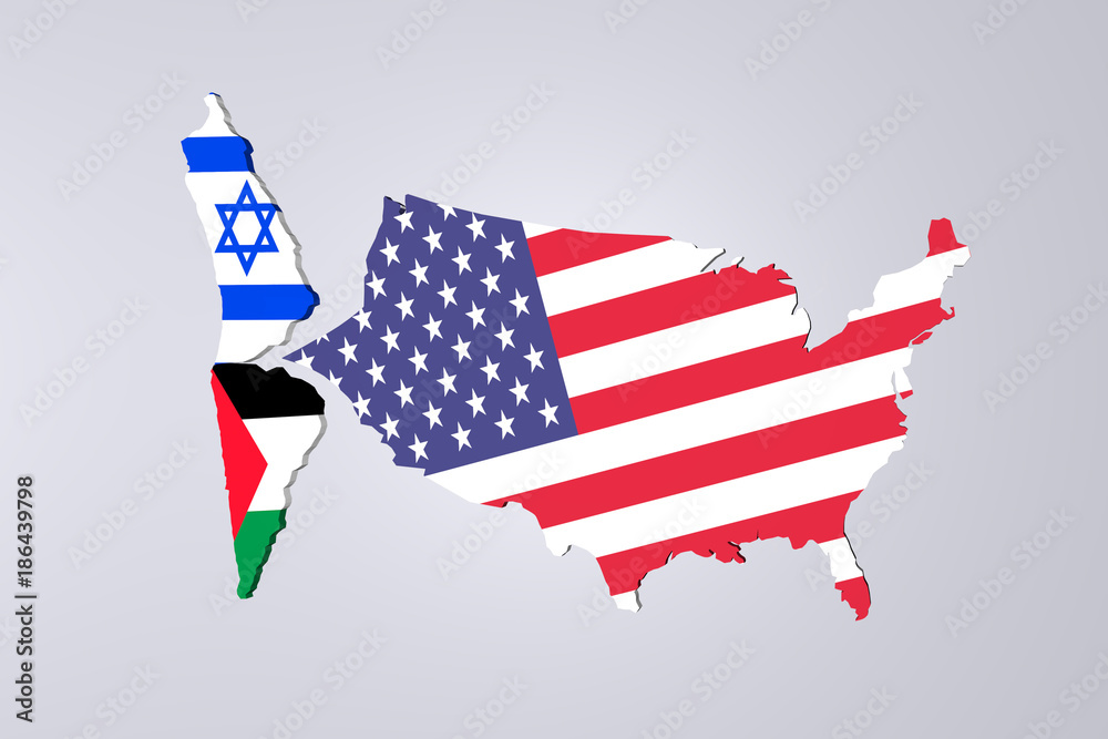 3D render of an map of USA, Palestine and Israel Stock